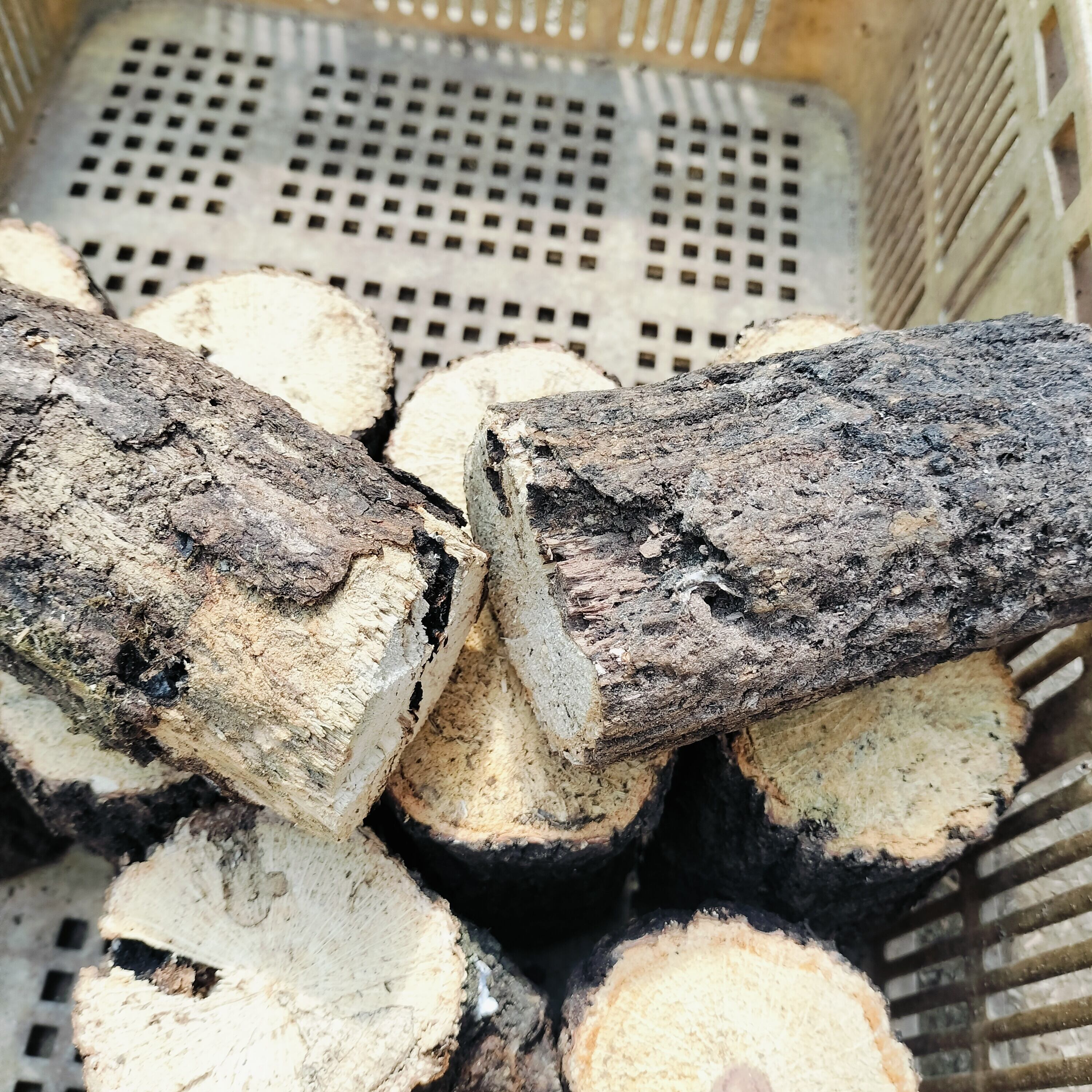 ・椎茸の栽培に使用した4〜5年物のよく朽ちたものを厳選しております。