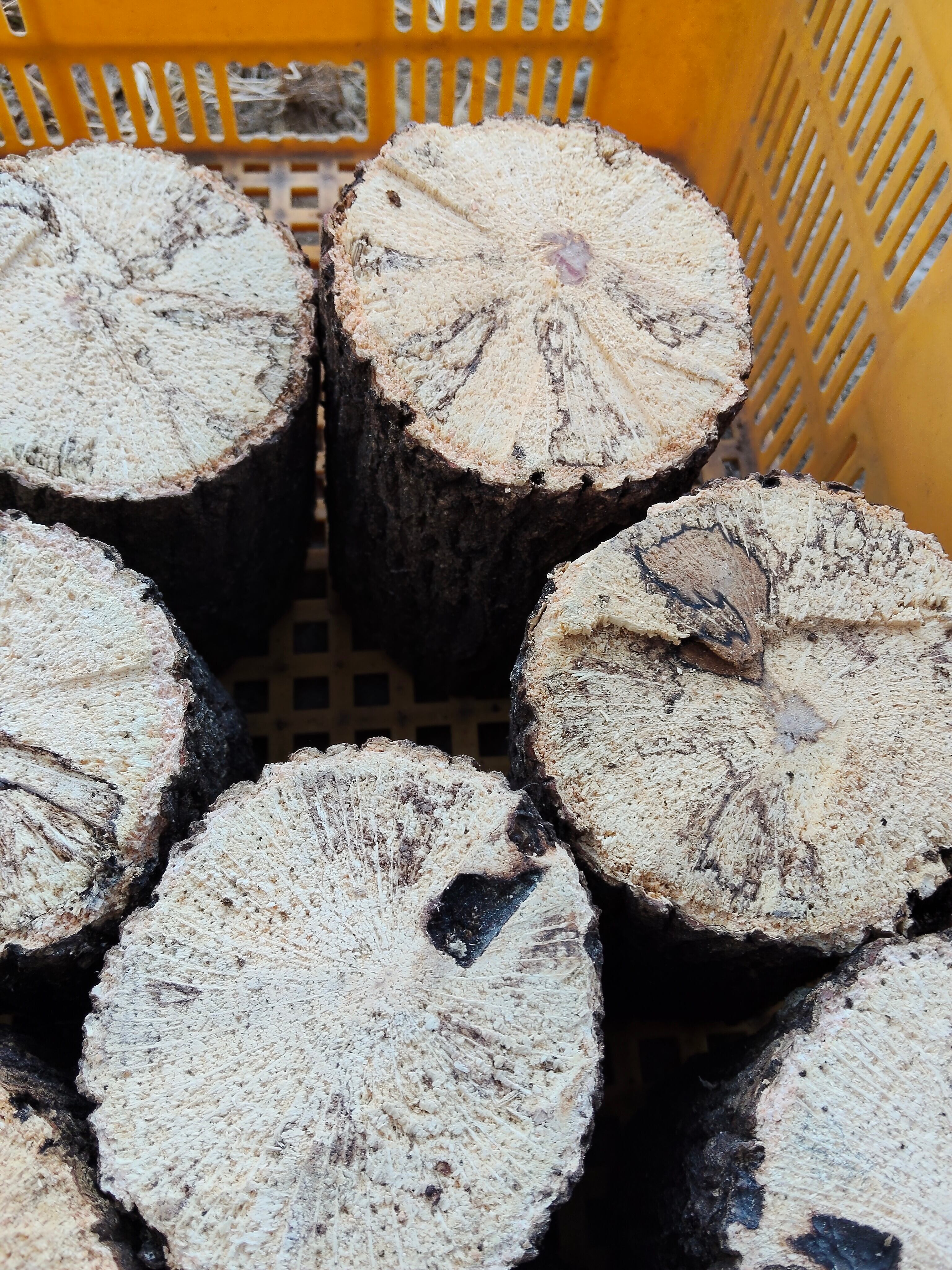 ・椎茸の栽培に使用した4〜5年物のよく朽ちたものを厳選しております。