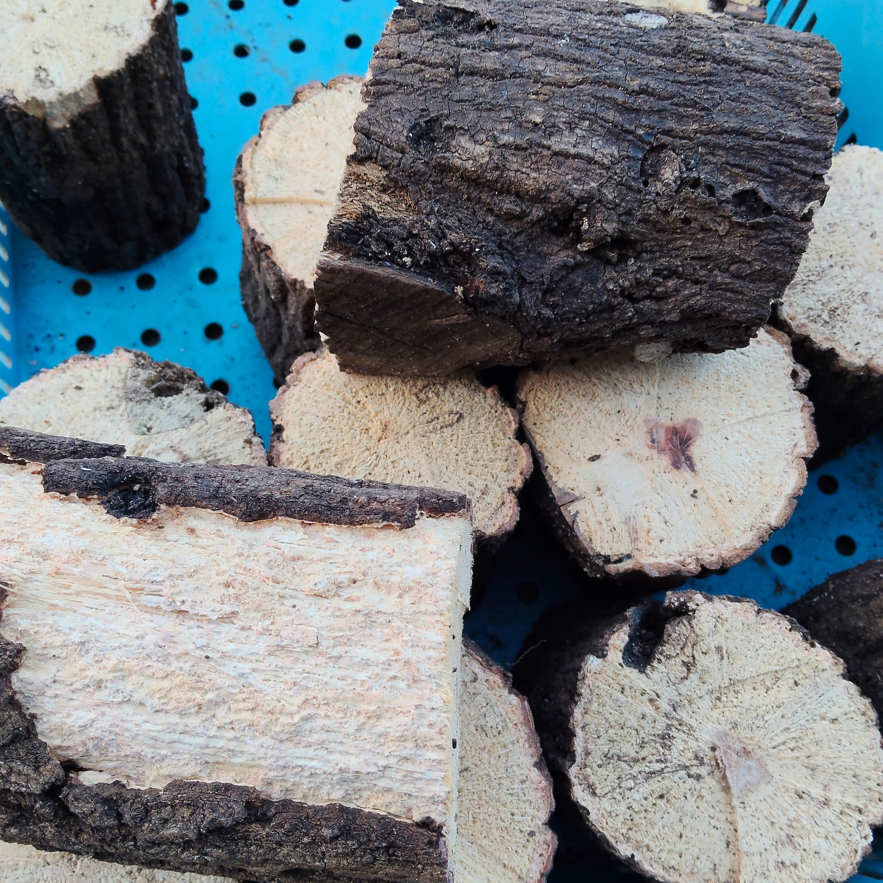 ・椎茸の栽培に使用した4〜5年物のよく朽ちたものを厳選しております。
