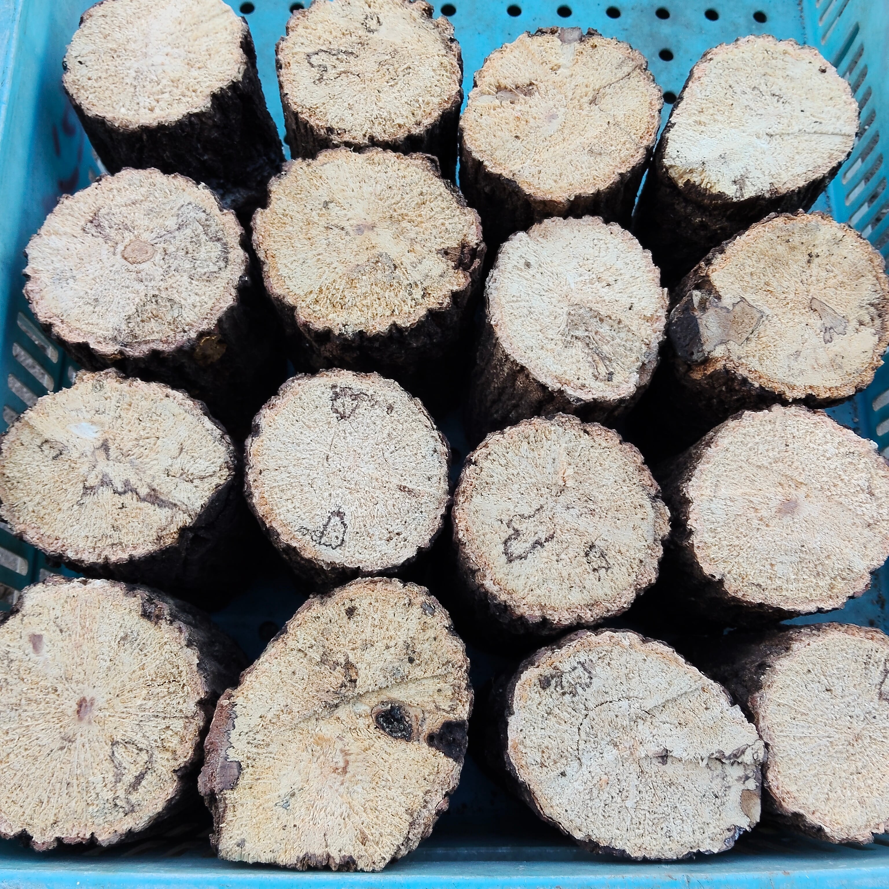 ・椎茸の栽培に使用した4〜5年物のよく朽ちたものを厳選しております。