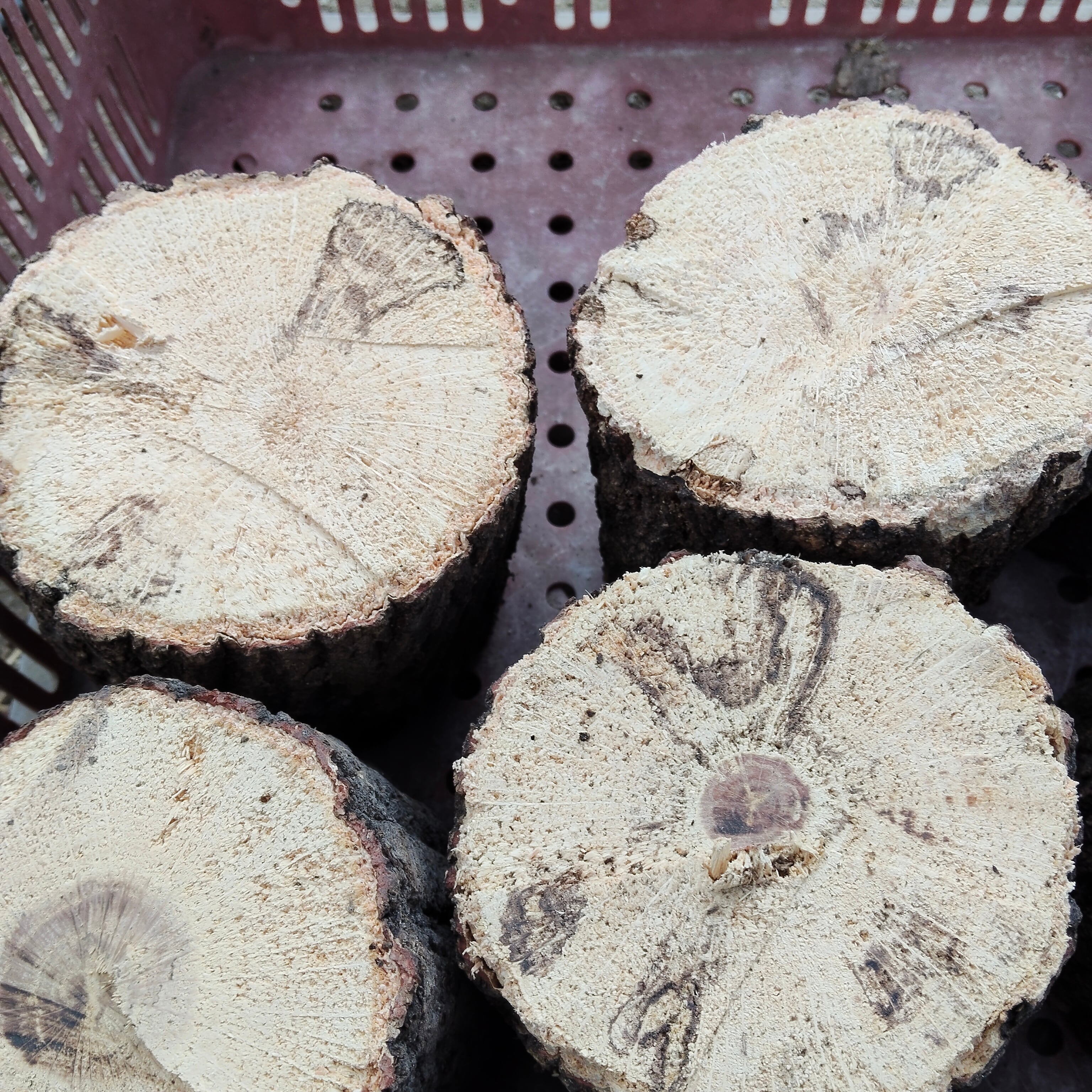 ・椎茸の栽培に使用した4〜5年物のよく朽ちたものを厳選しております。